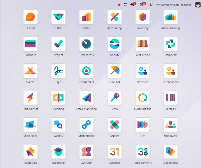 Odoo is a modular business management system that connects your company’s processes into one integrated platform. For example, in a webshop, Odoo can manage your online store, product catalog, inventory, payments, shipping, accounting, and customer records in a single system.